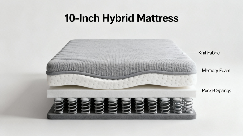 10-Inch Hybrid Mattress: Knit Fabric, Memory Foam, Pocket Springs