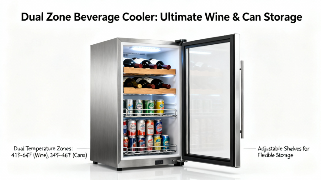 True beverage preservation requires precise climate management. A dedicated dual-zone refrigerator allows you to store red wine, white wine, and various beverages at their ideal temperatures simultaneously. This is critical because, as noted on Wikipedia, the recommended serving temperature for wine varies significantly—from 7–13°C (45–55°F) for light whites to 15–18°C (59–64°F) for full-bodied reds. The independent compartments in a unit like the 24″ Dual Zone 20 Bottle & 60 Can Wine Beverage Cooler ensure that delicate beverages are not compromised by a one-size-fits-all setting, preserving intended flavors and aromas.