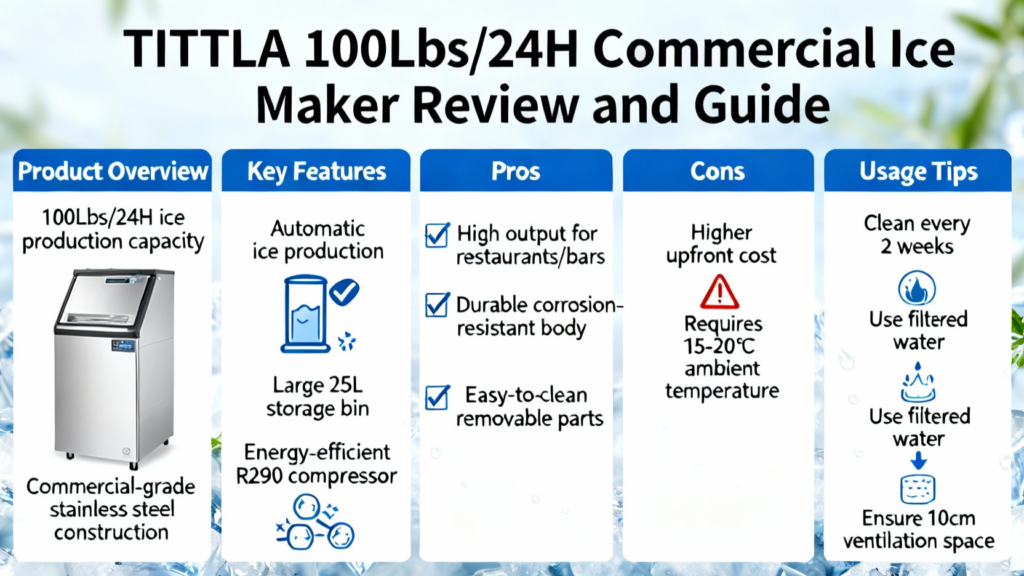 For bars, cafes, and restaurants, a reliable ice supply is non-negotiable. This article explores the key features that define a superior commercial ice maker, using the TITTLA 100Lbs/24H Commercial Ice Maker as a benchmark. We’ll delve into performance metrics, hygienic design, operational intelligence, and the practical benefits for your establishment, providing a comprehensive guide to making an informed investment.